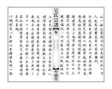 卷一(卷首):吳氏圖騰、題詞、泰伯座像無錫鴻山泰伯墓、無錫泰伯廟、籌委會名錄、功德榜、大學生一覽表、譜序、凡例、記、詩詞、跋卷二:奉天敕命、像贊、制服圖、傳、續修凡例人口統計表卷三:先祖序傳、民國版老譜領譜字號、吳氏世系說、歷屆續修宗譜記錄、源流世系、卷四:統宗世系世表、卷五:統宗世系表、編后記、領譜字號。
