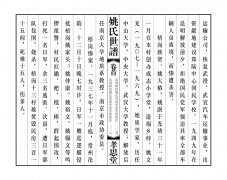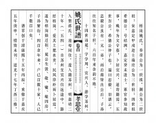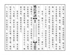 蓋我姚氏系出重華彌隋涉宋,忠武、忠毅兩公,毗陵著績久矣,赫赫然載在史策,系于人心。而子姓之土著于常者日益蕃,別派分流,所在多有十?dāng)?shù)傳。至學(xué)周公隱身山野,卜居梧崗,是為梧崗里姚氏始遷之祖。虞舜為得姓始祖卷一:姚氏宗譜原序、譜序、祖先的來歷、歷史的印記、姚氏家訓(xùn)卷二至卷九:世系世表卷十至十二:老譜選集。