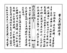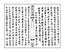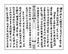 卷一:曹氏續修宗譜序、奉天敕命、先祖像贊、喪服圖、祠墓全圖、領譜芳名錄、后記、余慶錄卷二:名宦錄、續修宗譜記、凡例、宗約、祠規、家訓、祝文、譜序、傳記、壽序卷三至卷六:世系世表。