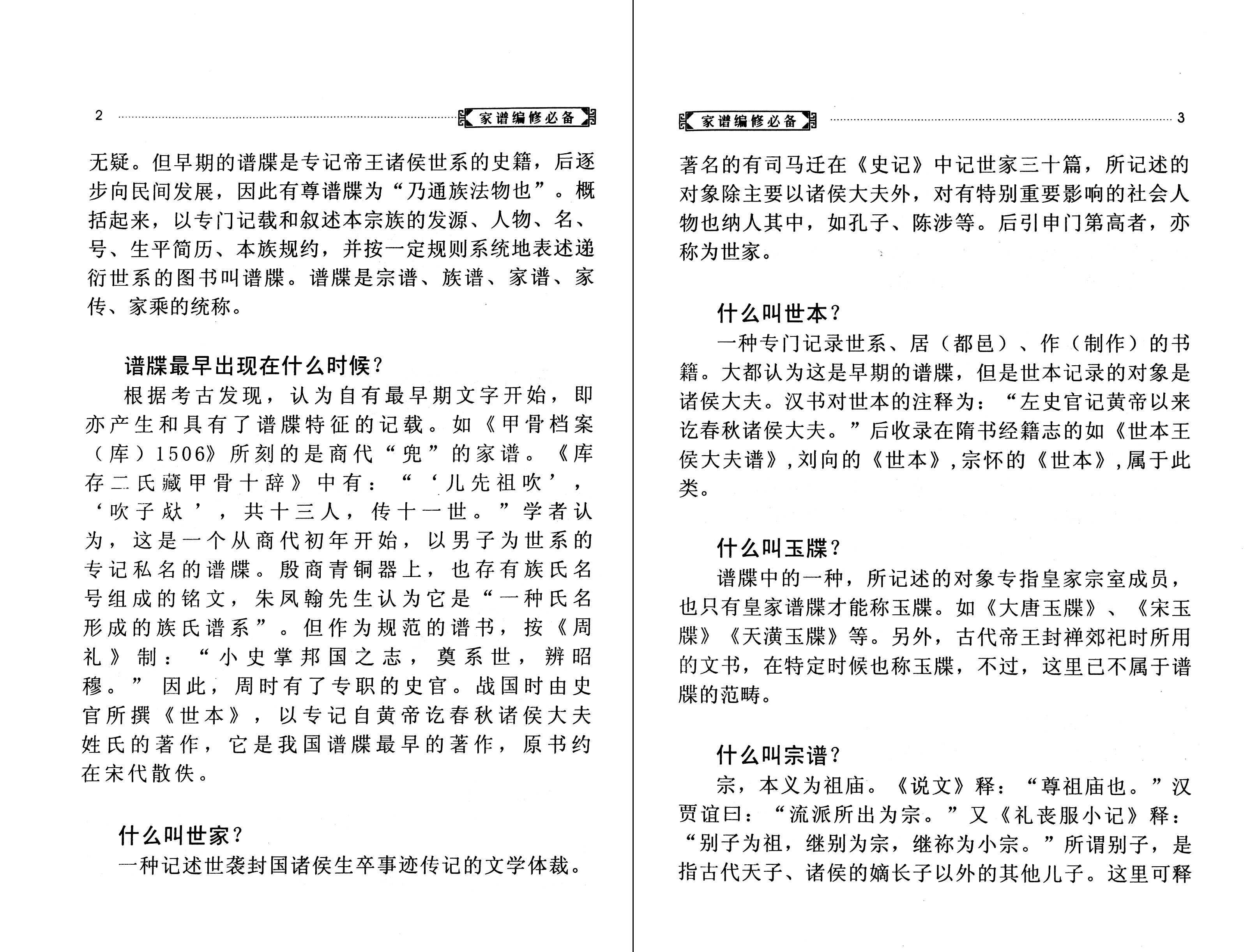 當今人們的編修宗譜或家譜,尚屬譜牒文化研究的初級階段,還不能說是真正意義上的譜牒研究。在諸多整理、編輯家族、宗族血緣史的過程中,往往受阻于古文、考證等“羈絆”而不得順當,這也是現實。為此,我們輯錄了有啟導性的文章和修譜參考資料,成一小冊,并希望成為一個系列。供熱心修譜者參考借鑒,以提高修譜水準,促進我市譜牒文化研究向縱深發展。
