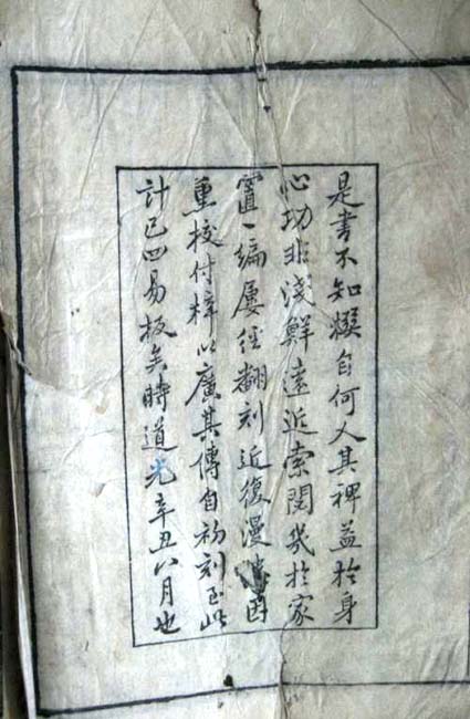 年代久遠(yuǎn),《真修寶卷》紙張已經(jīng)發(fā)黃發(fā)脆,好幾頁都有殘缺。朱炳國說,這本寶卷是他從南京一個(gè)小地?cái)偵稀疤浴眮淼摹毦頌槟局窦堄】蹋€裝,共101頁,2.6萬字。卷長24厘米,寬15厘米,每頁9行,滿行18字。記者看到,封面上有“真修寶卷”4個(gè)楷體字,左下角印著:江蘇常州惠民橋西首清秘閣書坊刷印裝訂。旁邊還有書價(jià),每本工料實(shí)價(jià)大錢六十文。在內(nèi)頁,記者找到了該寶卷的印刷年代:1841年(清道光21年)。