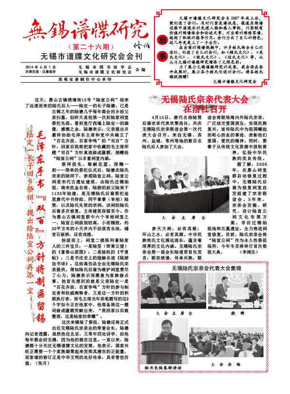 《無錫譜牒研究》是由無錫市圖書館學會、無錫譜牒文化研究會和清硯家譜制作中心合作編輯的譜牒文化月刊,匯集無錫和周邊地區的譜牒文化研究、家譜編修、祠堂文化、姓氏文化領域的資訊和論文,為譜牒文化愛好者搭建搭設交流平臺,共享修譜心得體會,全方位、多角度提供家譜編修的操作指導。