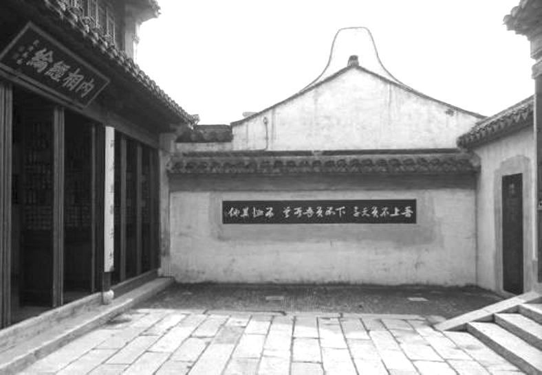 二進:為2米55高,18扇雕花落地木窗的二層硬山頂建筑享堂,木窗上方懸掛清乾隆皇帝御賜“內相經論”橫匾,二側相襯清蘭齊公陸子鑨“閉戶默觀天地